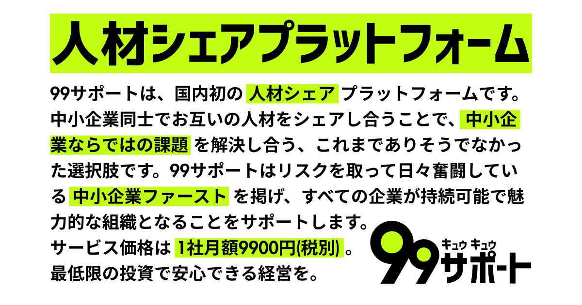 CLEAR INNOVATION株式会社、人材シェアプラットフォーム「99サポート」のリリースを発表