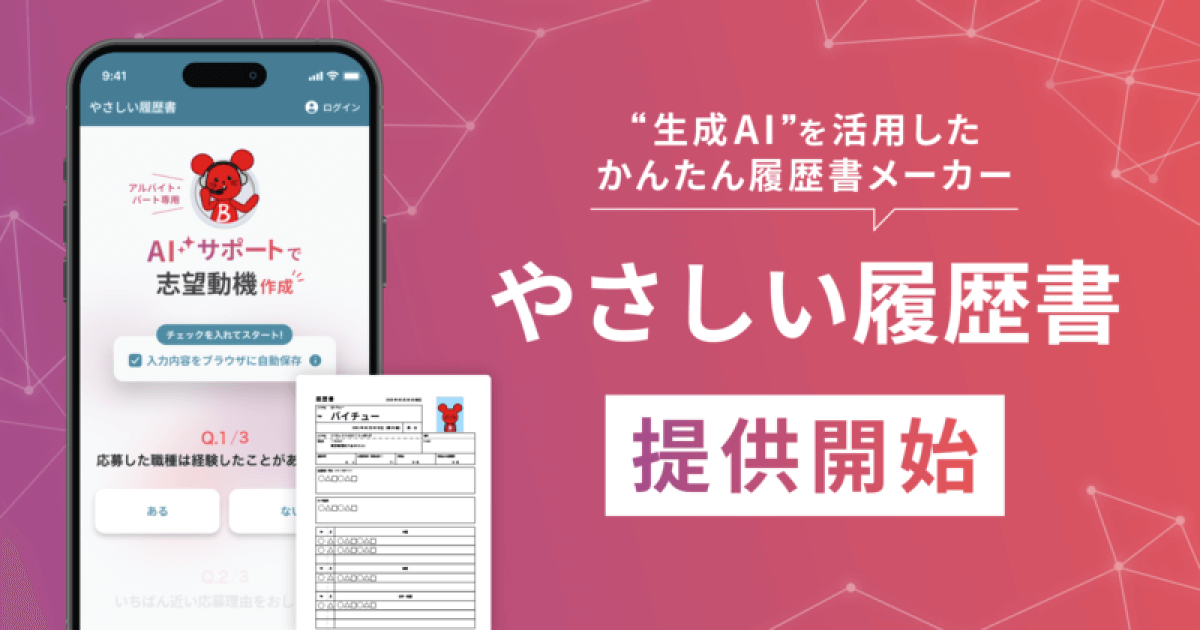 ディップ株式会社、「バイトル」に生成AIを活用した履歴書作成機能「やさしい履歴書」を提供開始