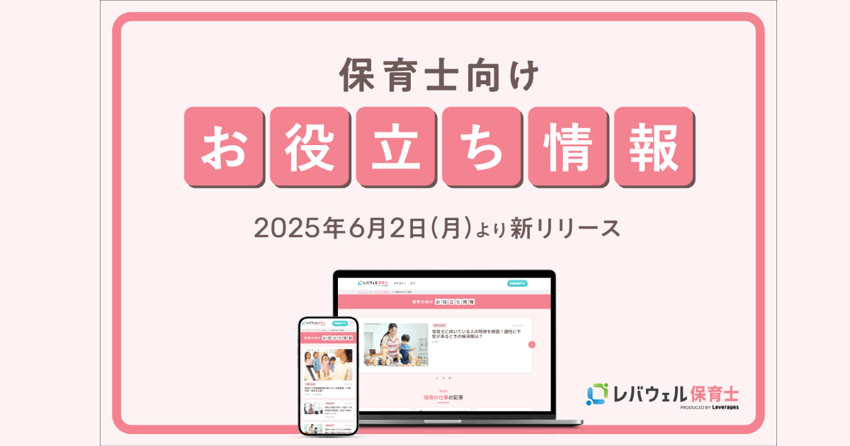 レバレジーズ株式会社、保育士のキャリア支援を目的とした情報サイト「保育士向けお役立ち情報」をリリース