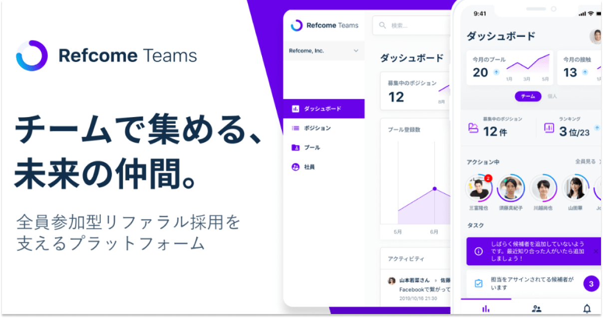 株式会社リフカムがスタートアップ・ベンチャーに特化したリファラル採用サービス「Refcome Teams」β版をリリース