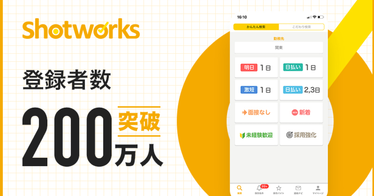 好きな日に1日だけ働ける『ショットワークス』登録者数200万人突破