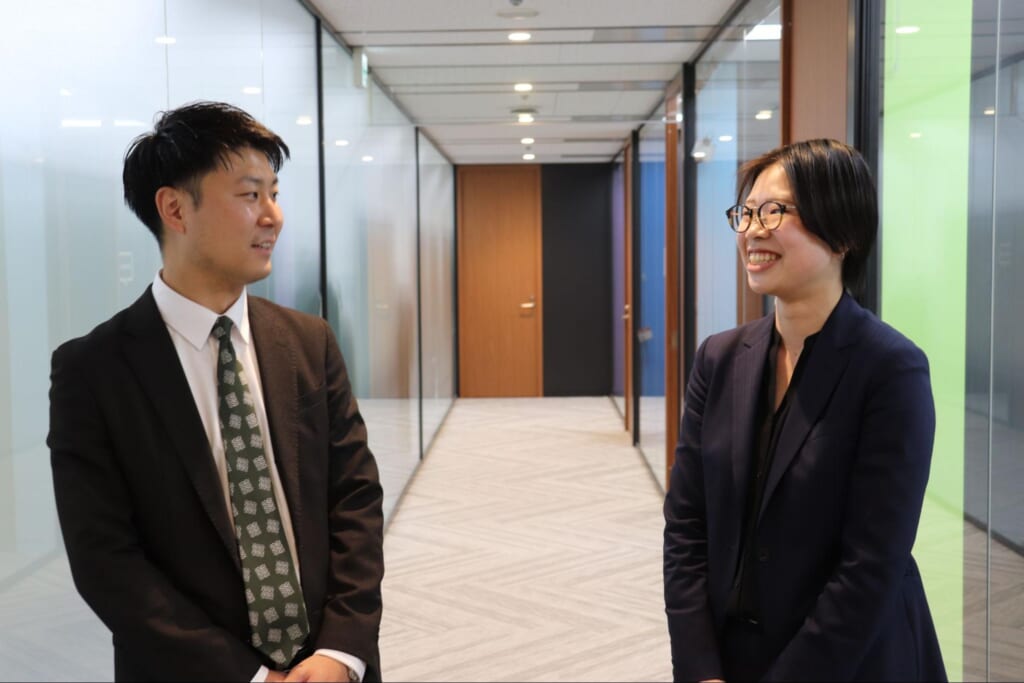 岸さん「古賀さんの第一印象は、最初は“ちょっと固い人なのかな…?”って、少しだけ怖く感じていました(笑)というのもビジネスカジュアルの先輩が多い中で、古賀さんはいつもバシッとスーツを着こなしていたので。でも、メンターとして関わる中で印象はすぐに変わって。とにかく丁寧で、すごく人柄の良い方だなと感じ、安心して話せる存在になっていきました」