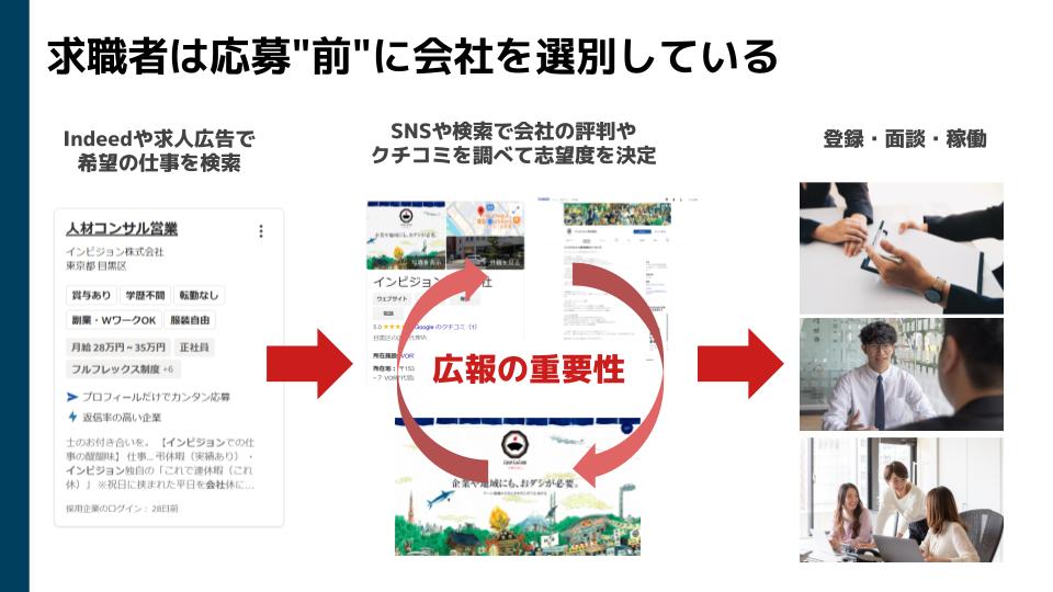 最近の求職者集客はWebマーケティングに近づいており、ユーザーは複数の情報を比較するのが当たり前。各広報チャネルの作り込みが、最終的な応募数を左右します。