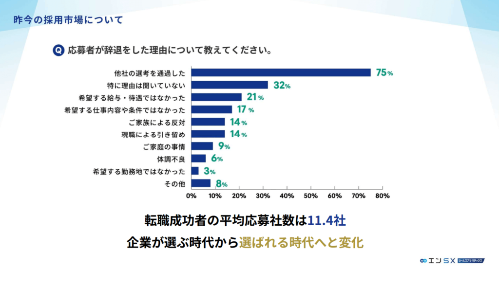 以前のような買い手市場なら“選ぶ側”でも通用しましたが、今は完全に売り手市場。求職者に選ばれる立場だという意識を持たないと、決定率は上がらないと思います」