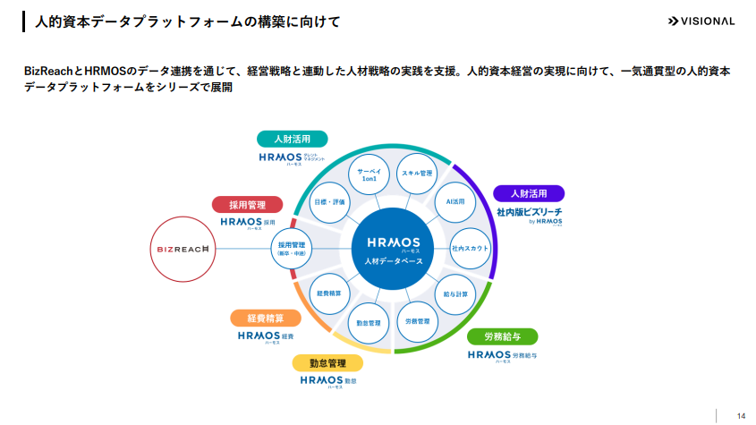 「HRMOS」事業では、プロダクトの機能拡充への投資や営業活動を継続し、各サービスの売上高が順調に拡大しました。「社内版ビズリーチ by HRMOS」のプロモーションを2025年1月末より開始し、「HRMOS経費」では汎用レイアウト設定機能やHRMOSタレントマネジメントとの連携機能をリリースしました。