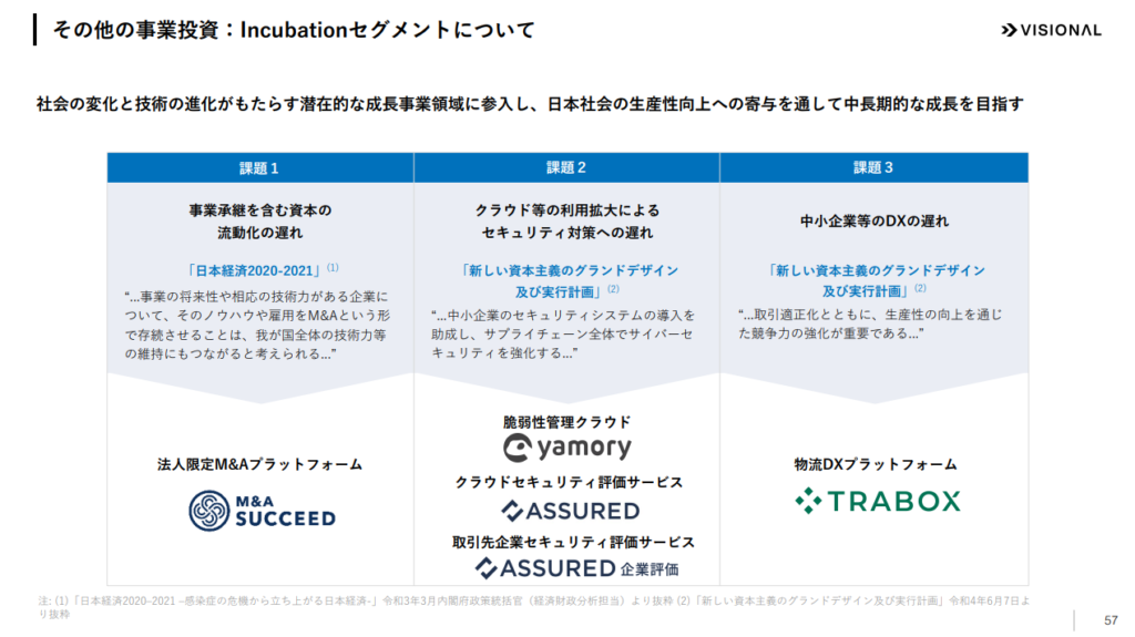 Incubationセグメントは、中長期的な企業価値向上を目指して、HR Tech以外の成長事業領域において、新規事業開発を行うセグメントです。