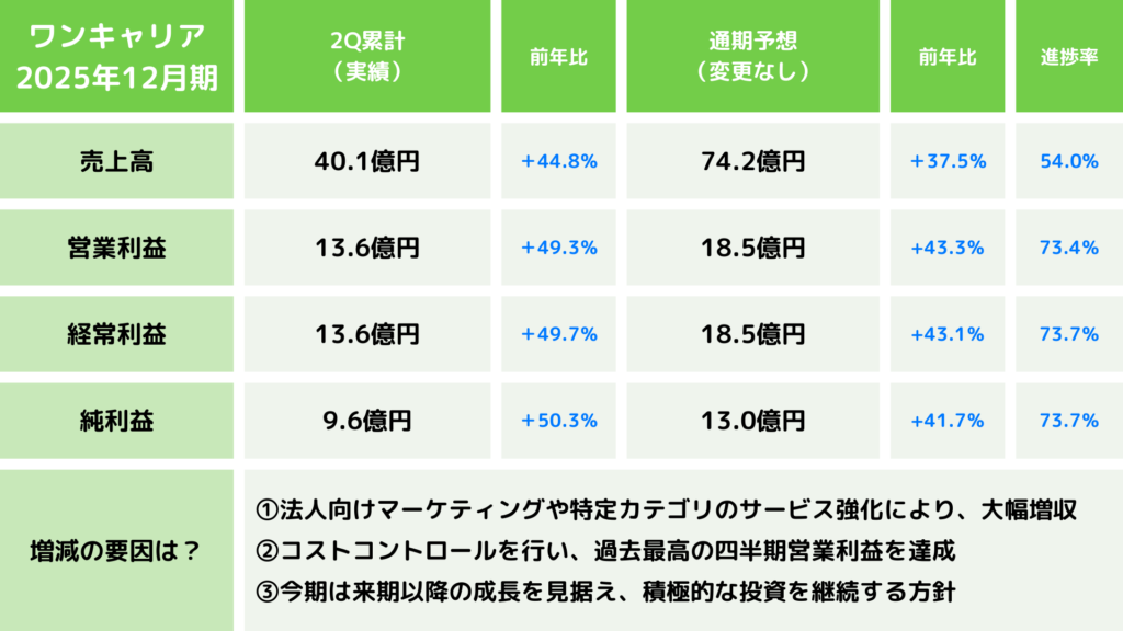 株式会社ワンキャリアの2025年12月期第2四半期決算が発表されました。この記事ではその決算・IRの内容をわかりやすくまとめて分析・解説し、人材業界の最新トレンドに迫ります。ぜひチェックしてください!
