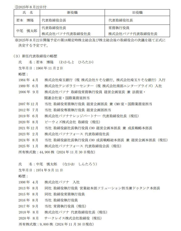 8月には中尾慎太郎氏が代表取締役社長に就任。自ら育て上げたBPO事業を成長の軸に据え、M&Aを含む事業拡大と、前期に発表された同社初の中期ビジョン「PASONA GROUP VISION 2030」に基づく成長戦略を推進していく方針です。