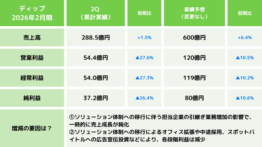 ディップ株式会社の2026年2月期第2四半期決算が発表されました。この記事ではその決算・IRの内容をわかりやすくまとめて分析・解説し、人材業界の最新トレンドに迫ります。ぜひチェックしてください!