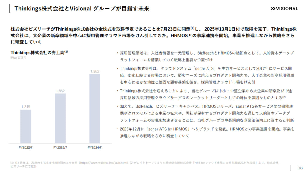 2025年10月1日付で、ビジョナルグループは大企業の新卒領域を中心に採用管理クラウド市場をけん引してきたThinkings株式会社の全株式を取得しました。
