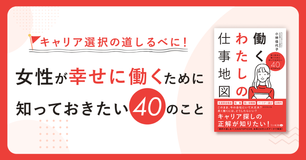 そこで今回は、女性が長く幸せに働き続けるために知っておきたいトピックスをまとめた、株式会社キャリアデザインセンター「女の転職type」編集長 小林 佳代子氏著・『働くわたしの仕事地図』を紹介します。