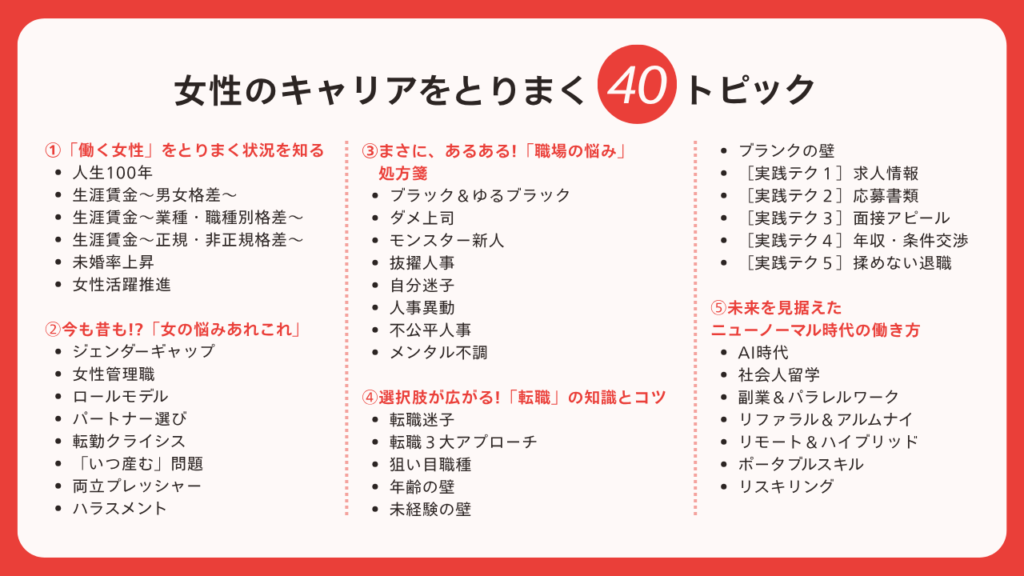 今回はそんな現代の働く女性たちに寄り添う本書から、キャリアの指針につながるヒントをいくつかピックアップして紹介します!
