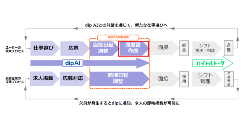 dip AIの機能がアップデートされました!ディップ社のサービスや新機能を通じて、ユーザーと応募先企業の双方に、一気通貫で価値を届けられる仕組みが整ってきていますね!