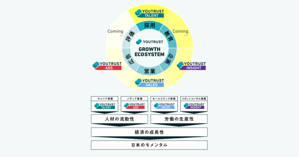 日本の「人材の流動性」と「労働の生産性」向上に向けて、企業の事業成長を支える新サービスがスタート!YOUTRUSTの「Growth Ecosystem構想」、その進化は止まりません。今後の事業展開からも目が離せませんね!