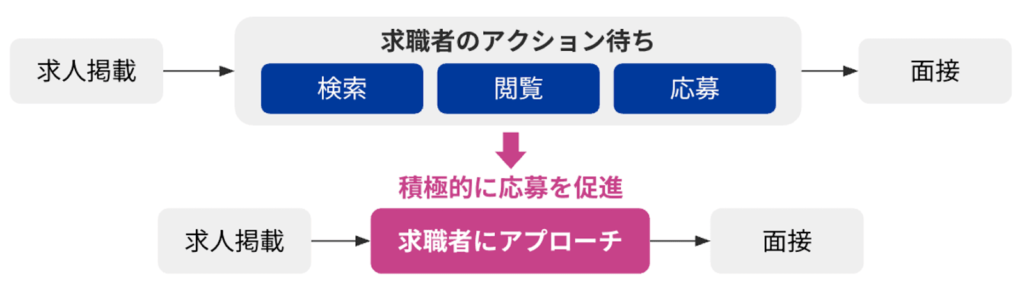 本機能は、企業が設定した条件に基づき、AIが条件に合致する可能性のある求職者へ求人への応募を促すアプローチを自動送付するサービスである。企業は求職者からの応募を「待つ」のではなく、積極的に「アプローチする」採用活動が可能となる。