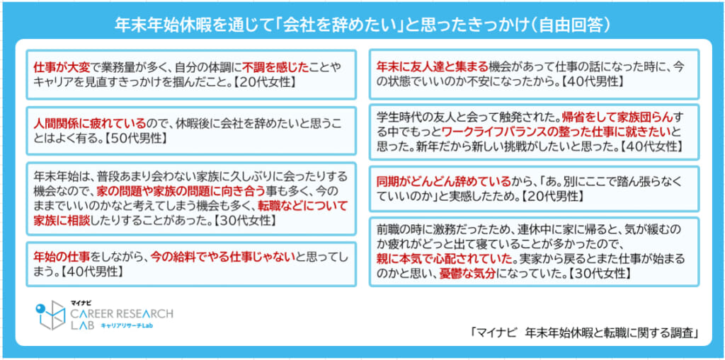 正社員の約3人に1人が年末年始休暇で「会社を辞めたい」と感じる、株式会社マイナビ調査