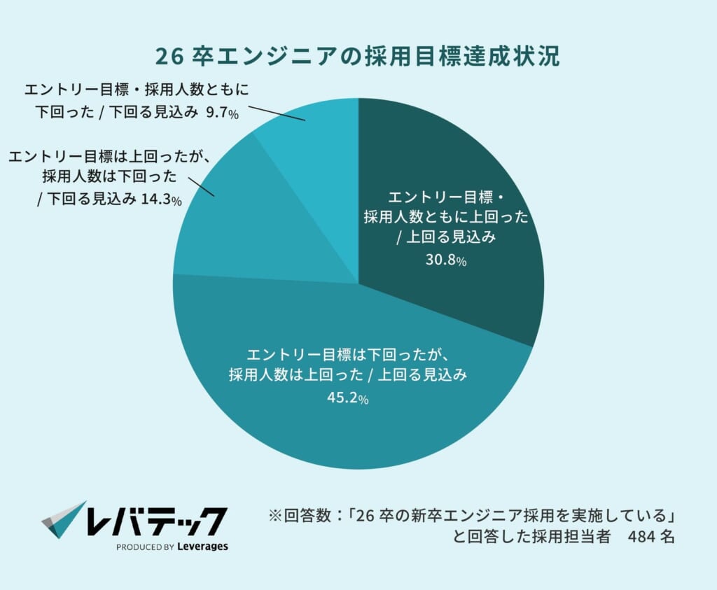 - 新卒エンジニア採用を実施する約4社に1社が、26年卒の採用目標に届かず