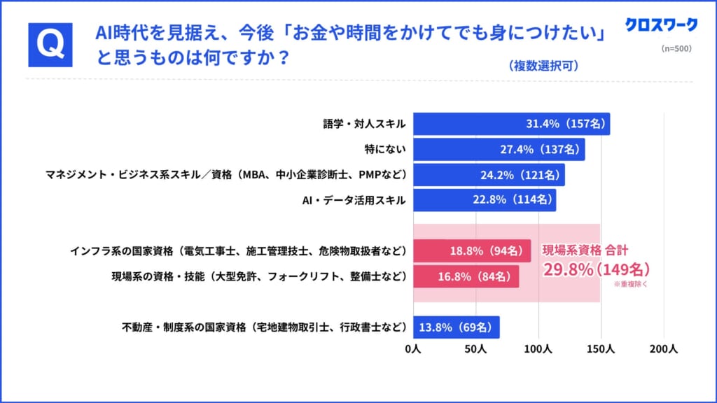 AI時代を見据え、約4人に1人が「現場系・インフラ系資格」の取得に意欲
