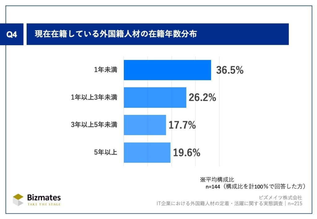 外国籍人材の在籍は「3年未満」が主流 採用拡大と長期定着の両面が進行