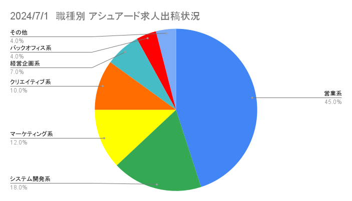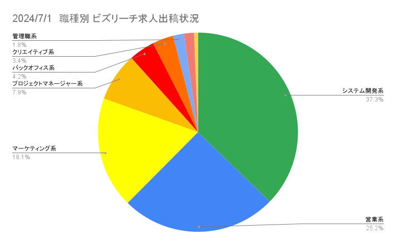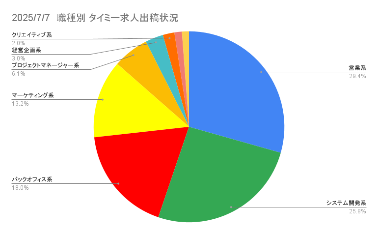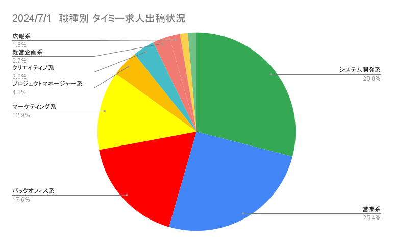 職種別で見ると割合は大きく変わっておらず、営業系、システム開発系、バックオフィス系、マーケティング系の職種が大半を占めていました。
