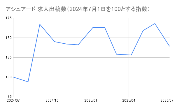 その戦略通り、アシュアードの求人出稿数は直近1年で約1.6倍に増加しました。