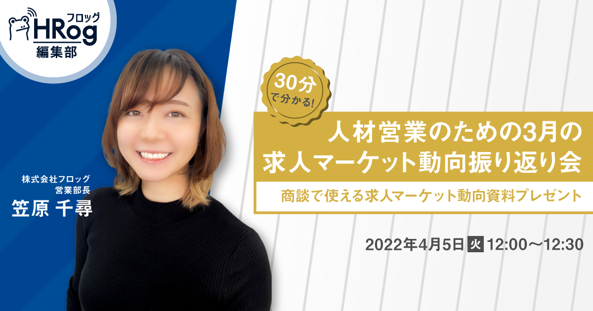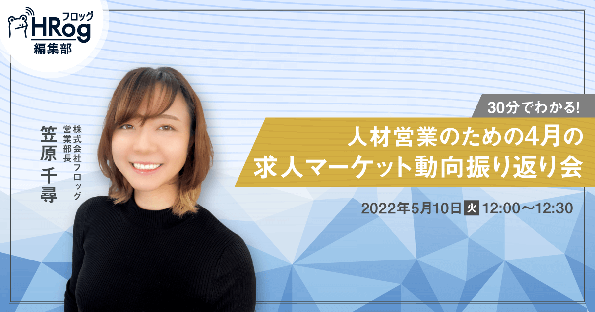 【5月10日開催】30分でわかる!人材営業のための4月の求人マーケット動向振り返り会、株式会社フロッグ主催