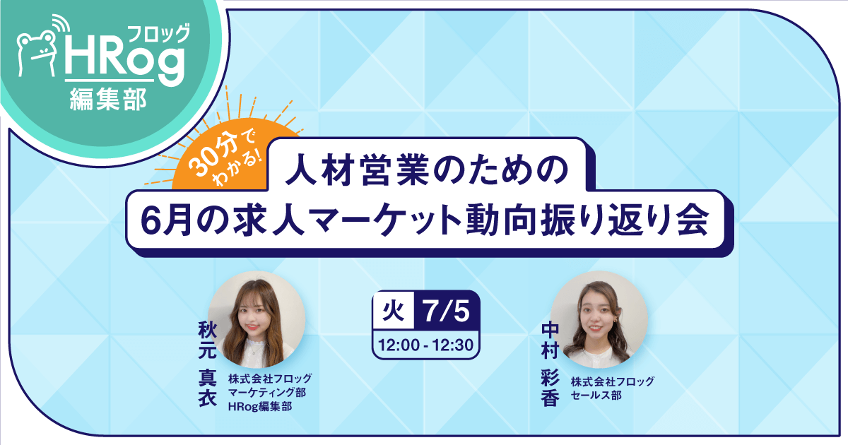 【7月5日開催】30分でわかる!人材営業のための6月の求人マーケット動向振り返り会、株式会社フロッグ主催