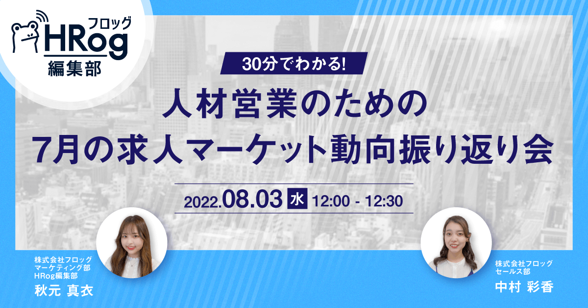 【8月3日開催】30分でわかる!人材営業のための7月の求人マーケット動向振り返り会、株式会社フロッグ主催