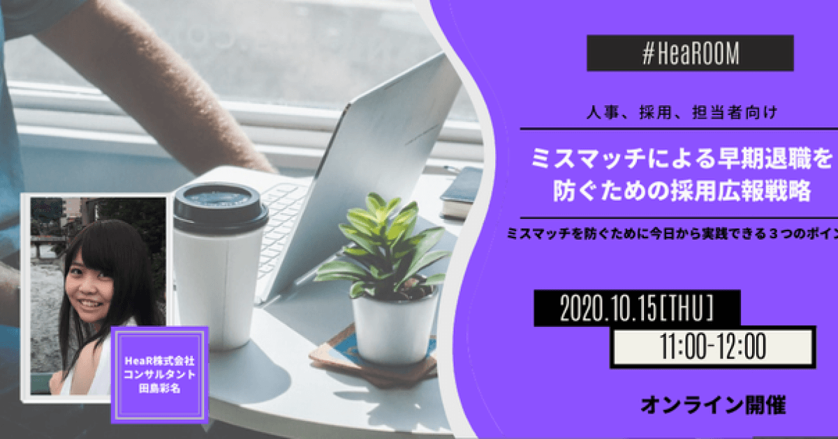 【10月15日開催】ミスマッチによる早期退職を防ぐための採用広報戦略、HeaR株式会社
