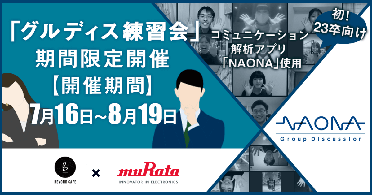 【8月19日まで開催】「NAONA Group Discussion」を用いた23卒向け「グルディス練習会」、株式会社Beyond Cafe・株式会社村田製作所共催