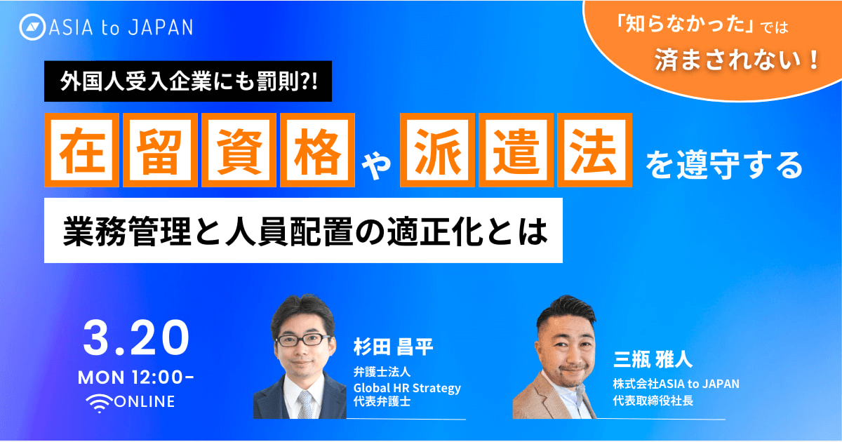 【3月20日開催】在留資格や派遣法を遵守する業務管理と人員配置の適正化とは、株式会社ASIA to JAPAN主催