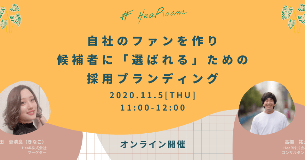 【11月5日開催】自社のファンを作り、候補者に「選ばれる」採用をするための採用ブランディング、HeaR株式会社