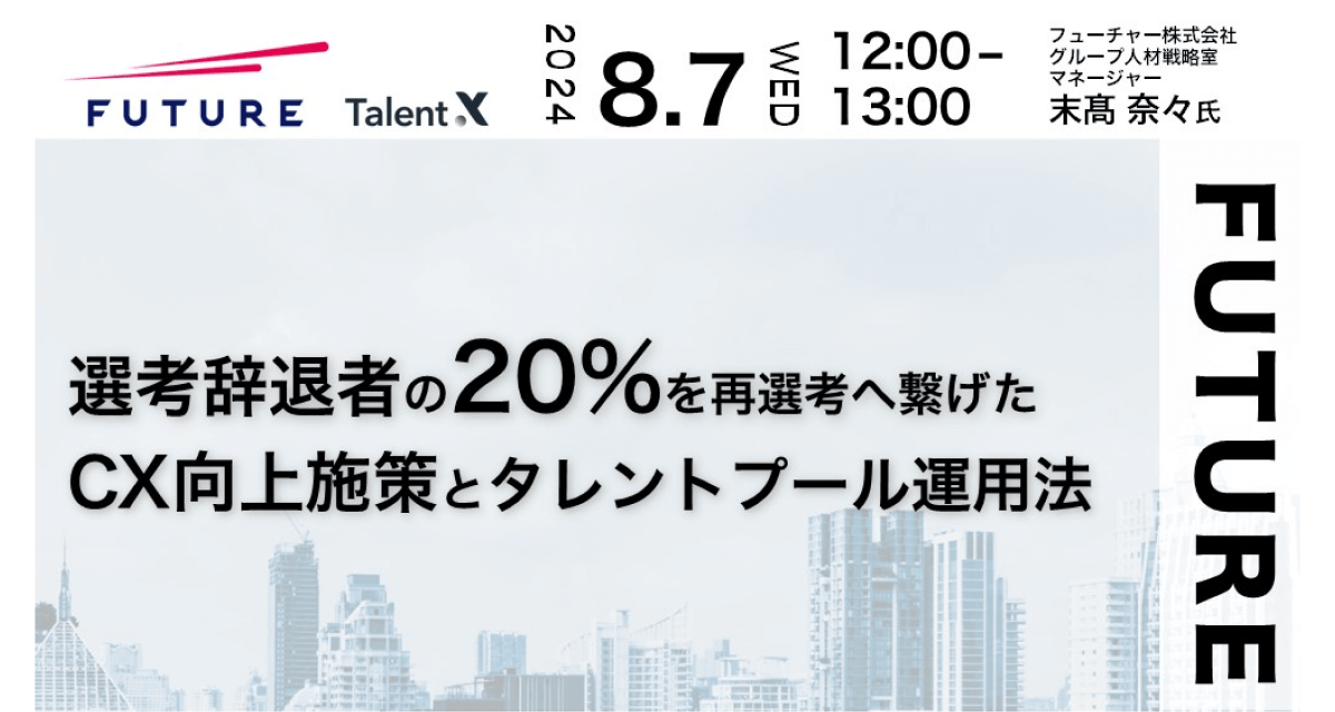 【8月7日開催】選考辞退者の20%を再選考へ繋げた施策セミナー、株式会社TalentX主催