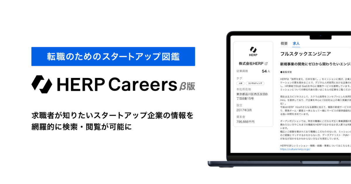 株式会社HERP、スタートアップ・ベンチャーに特化した求人媒体「HERP Careers」β版の新コンセプトを設定