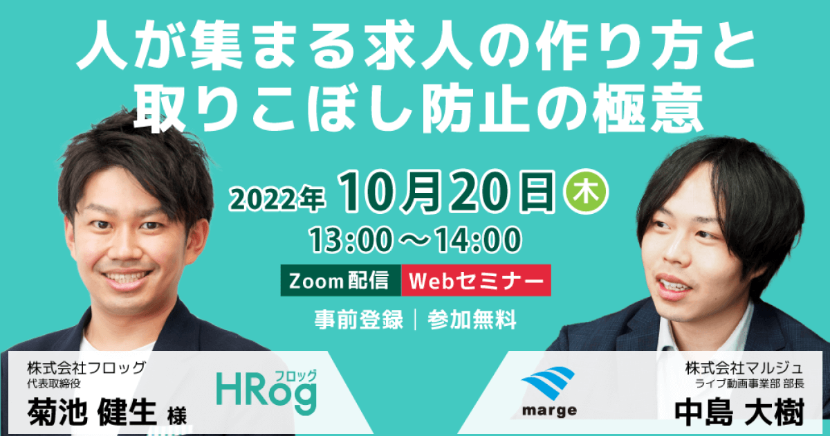 【10月20日開催】人が集まる求人の作り方と取りこぼし防止の極意、株式会社マルジュ・株式会社フロッグ共催