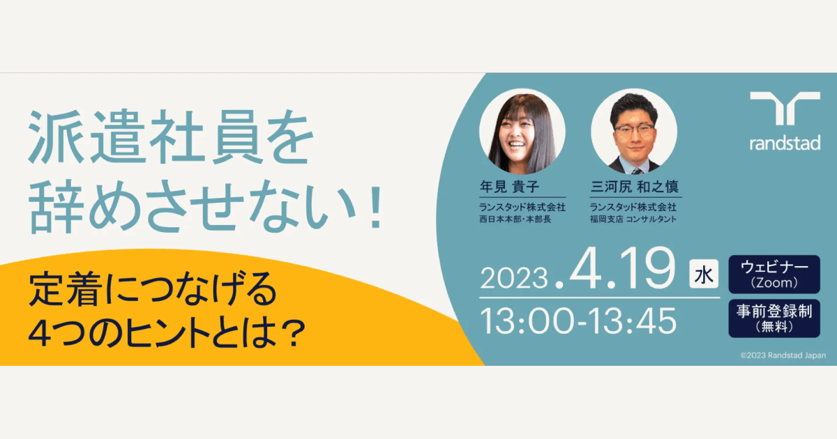 【4月19日開催】派遣社員を辞めさせない!定着につなげる4つのヒント、ランスタッド株式会社主催