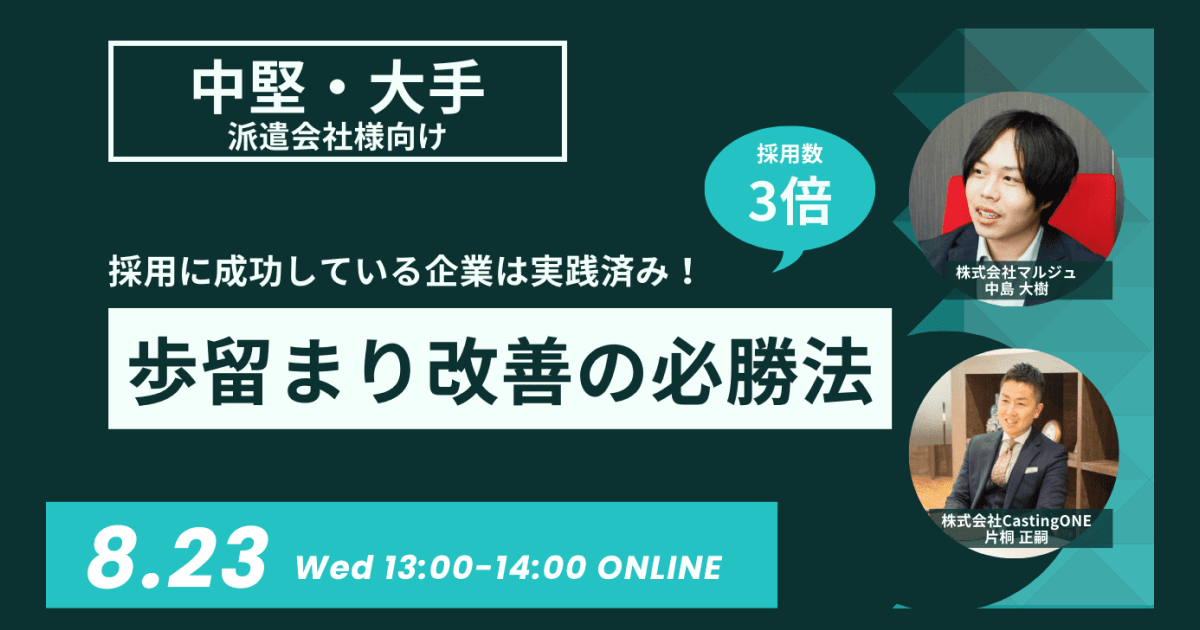 【8月23日開催】採用に成功している企業は実践済み!歩留まり改善の必勝法、株式会社マルジュ・株式会社CastingONE共催