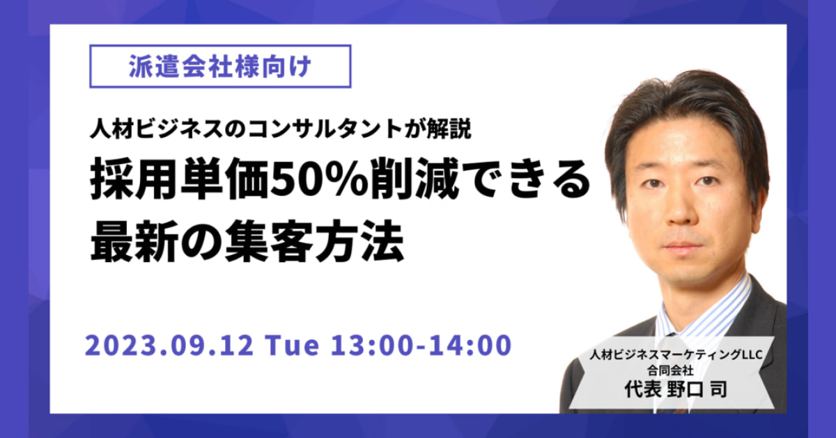 【9月12日開催】人材ビジネスのコンサルタントが解説~採用単価を50%以上削減する最新の集客手法とは~、株式会社CastingONE主催