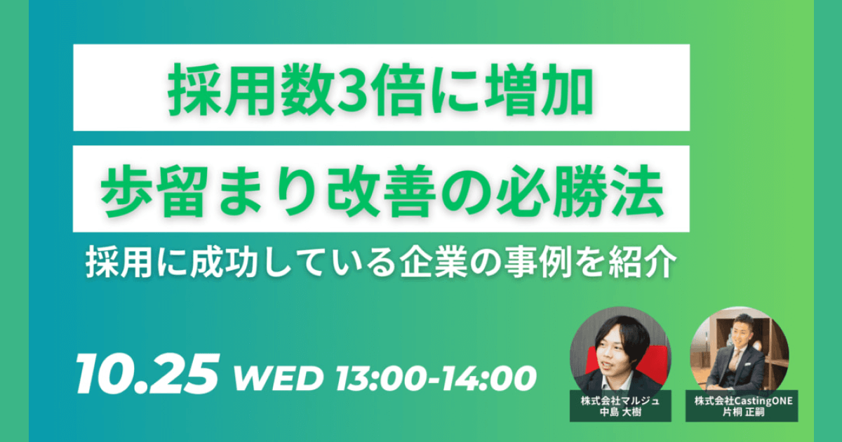 【10月25日開催】採用数3倍!歩留まり改善の必勝法~採用に成功している企業事例を紹介~