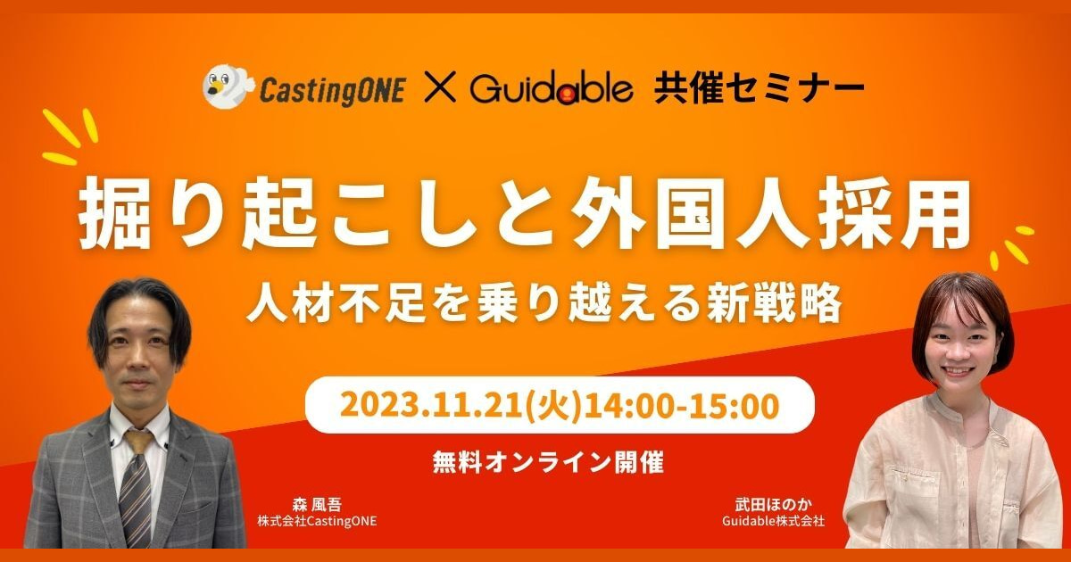 【11月21日開催】人材不足を乗り越える新戦略~掘り起こしと外国人採用~ 、株式会社CastingONE・Guidable株式会社共催