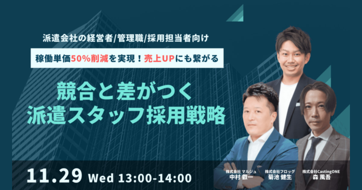 【11月29日開催】競合と差がつく派遣スタッフ採用戦略、株式会社CastingONE・株式会社マルジュ・株式会社フロッグ共催