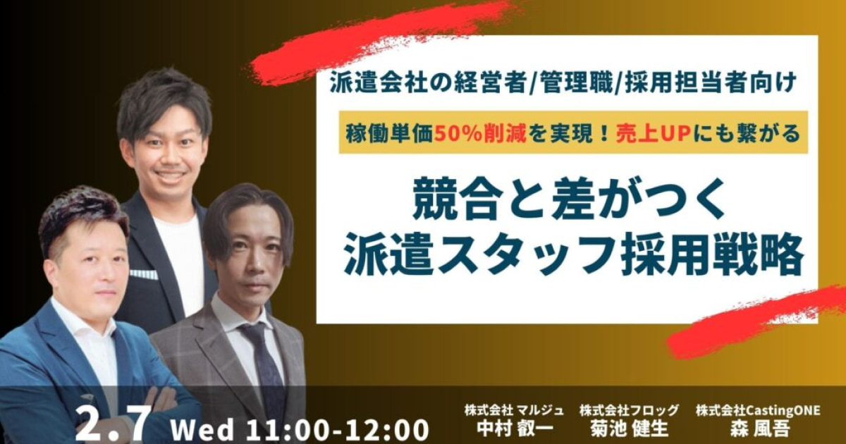 【2月7日開催】競合と差がつく派遣スタッフ採用戦略、株式会社CastingONE・株式会社マルジュ・株式会社フロッグ共催