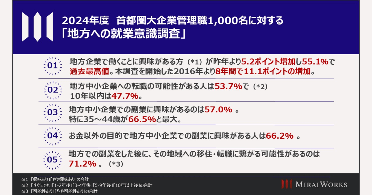 地方企業で働くことに興味がある人は55.1%、株式会社みらいワークス