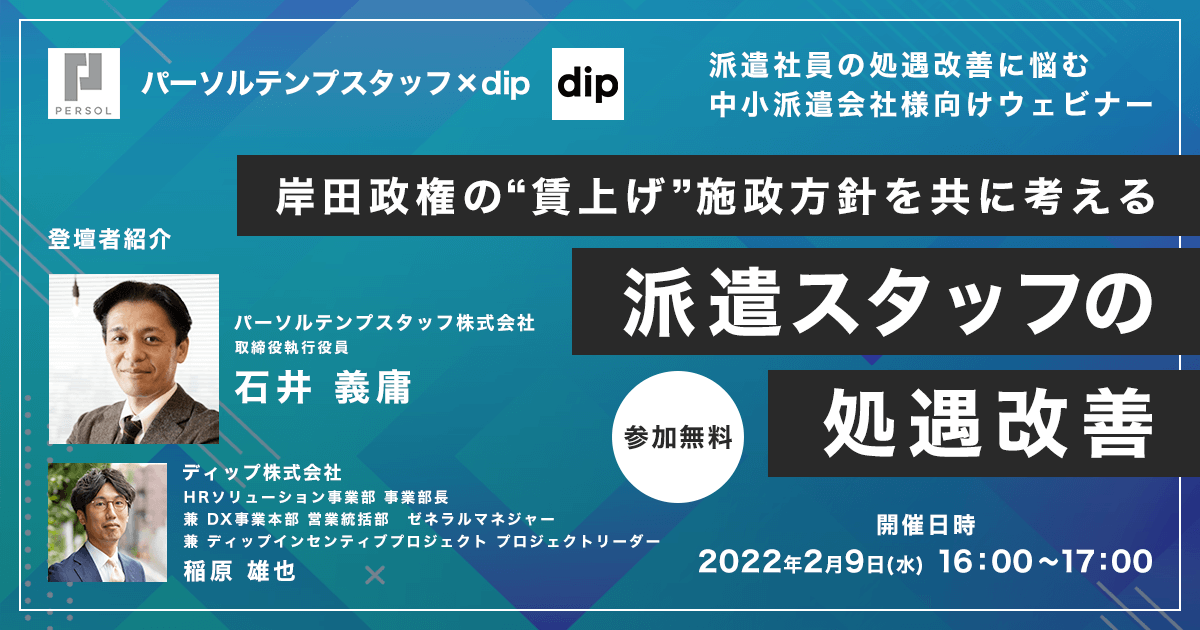 【2月9日開催】岸田政権の“賃上げ”施政方針をともに考える 派遣スタッフの処遇改善、ディップ株式会社主催