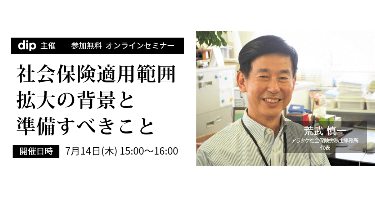【7月14日開催】社会保険適用範囲拡大の背景と準備すべきこと、ディップ株式会社主催