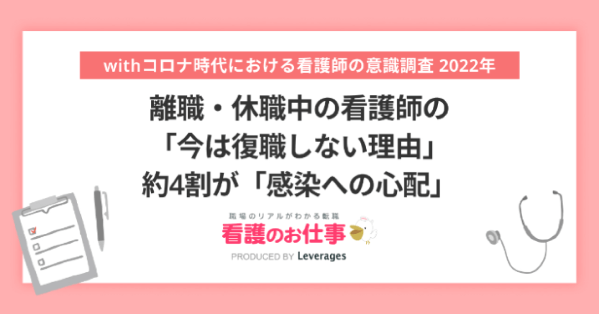 離職している看護師が復職しない理由の35.3%は「感染への心配」、レバレジーズメディカルケア株式会社調査