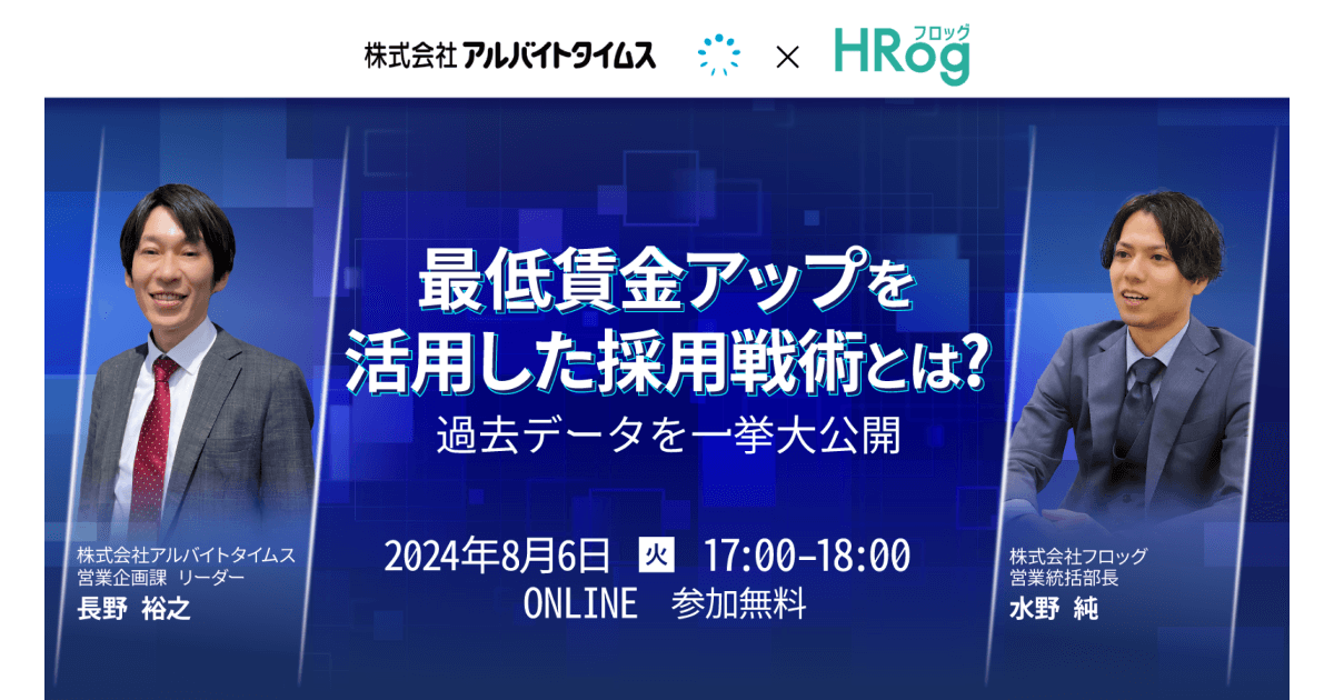 【8月6日開催】最低賃金アップを活用した採用戦術セミナー、株式会社アルバイトタイムス主催