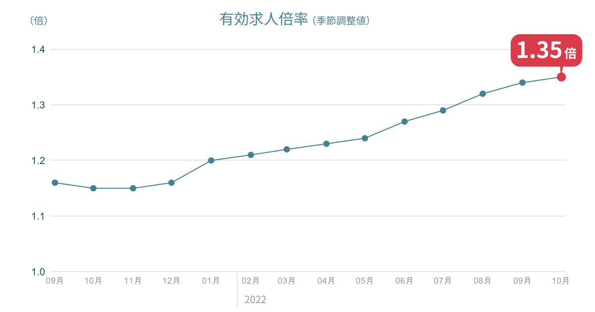 10月の有効求人倍率は1.30倍、前月から0.01ポイント上昇