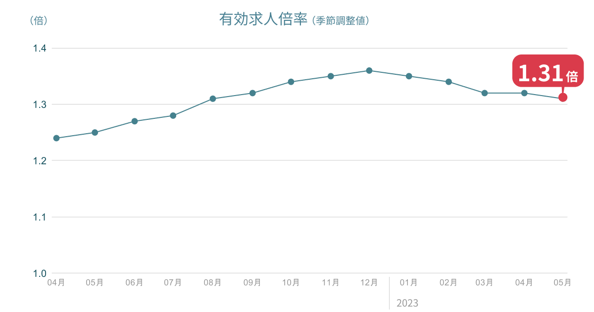 5月の有効求人倍率は1.31倍、前月から0.01ポイント低下