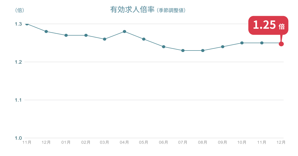 12月の有効求人倍率は1.25倍、3か月連続で同水準